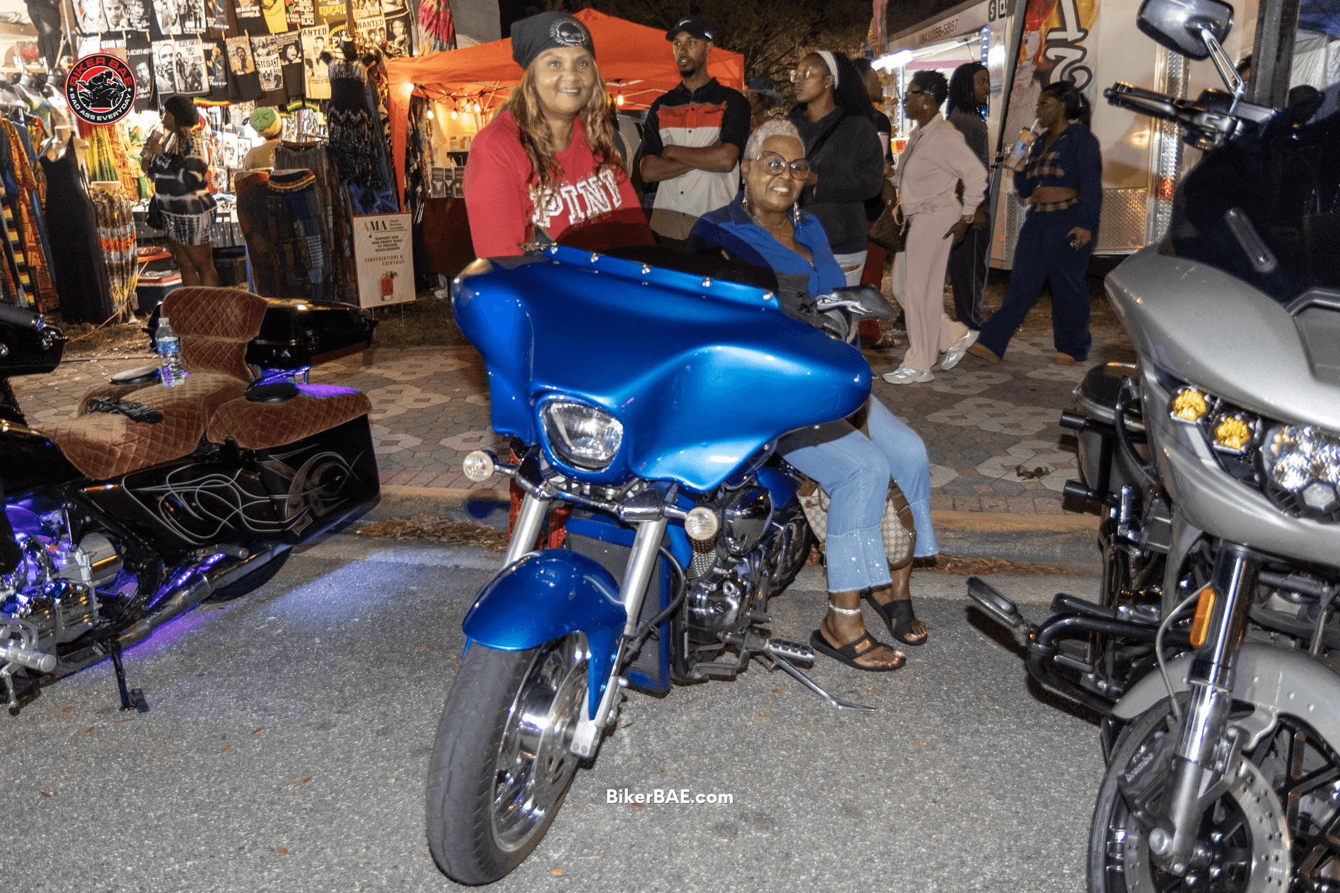 The event brought together a wide mix of riders and supporters. Couples posed proudly next to their bikes, groups gathered around heavily customized baggers, and vendors lined the streets selling hats, apparel, and accessories inspired by motorcycle culture.
